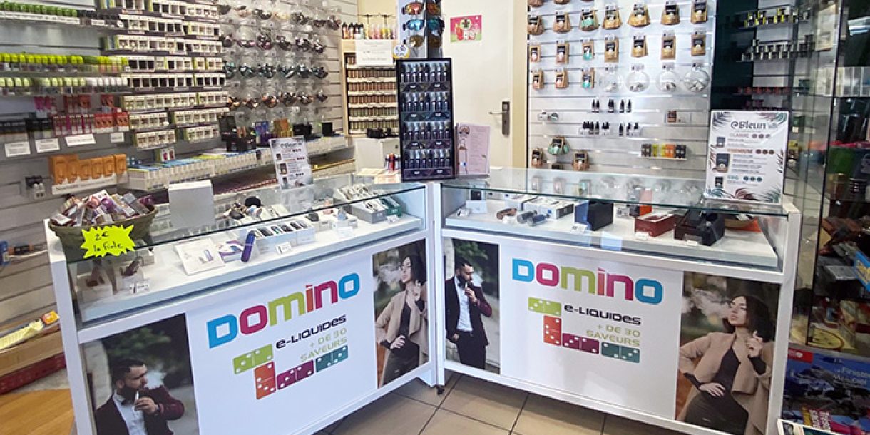 Un aménagement sur mesure, une présentation originale qui accroche l’œil du client, pratique pour distribuer les produits de la VAP. Notre but est de trouver l’équilibre entre 1, le visuel de l’aménagement et 2 le côté fonctionnel pour la vente. Domino c’est une shop chez vous ! Notre objectif est 1 Produit vu = 1 produit vendu ! Nous apportons une meilleure visibilité pour vendre plus vite les produits chez les buralistes.